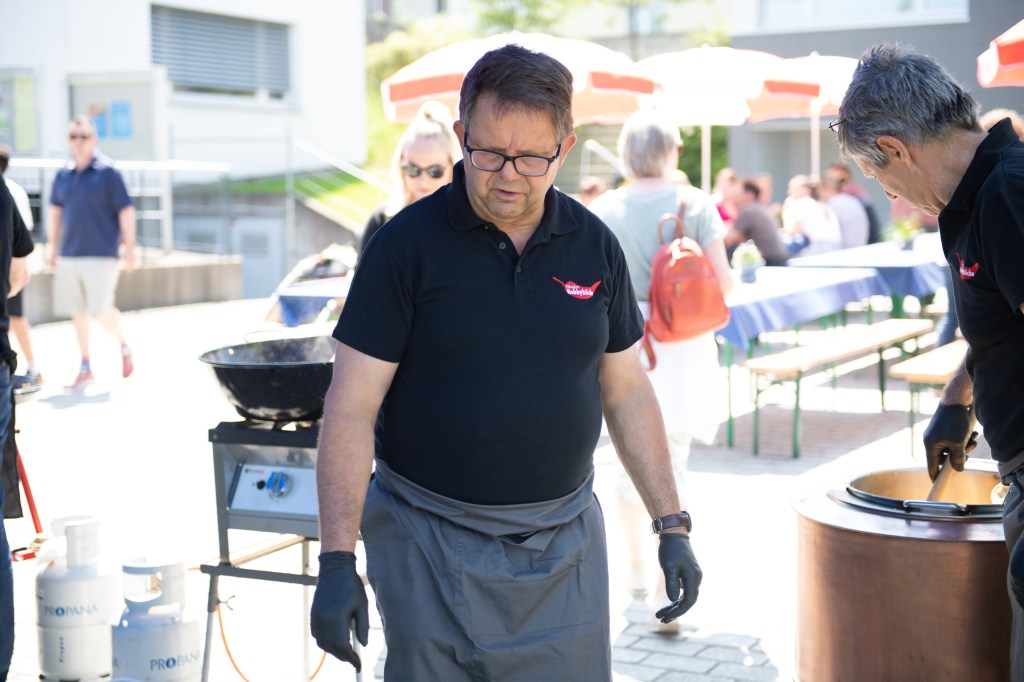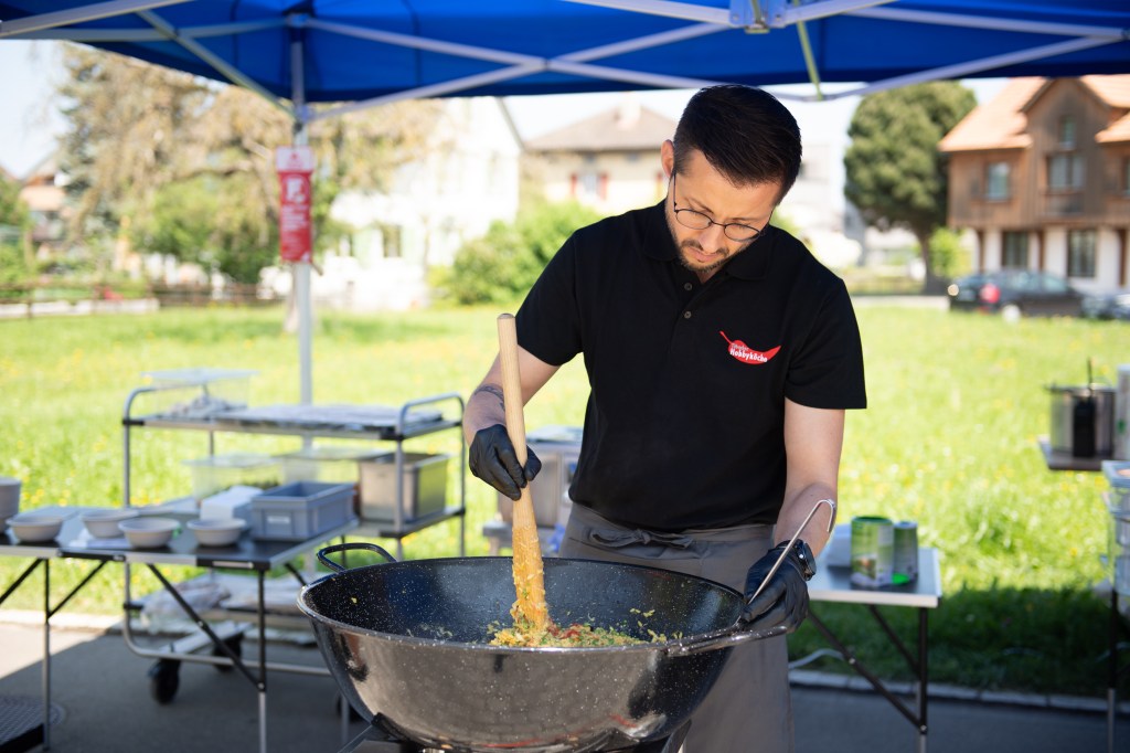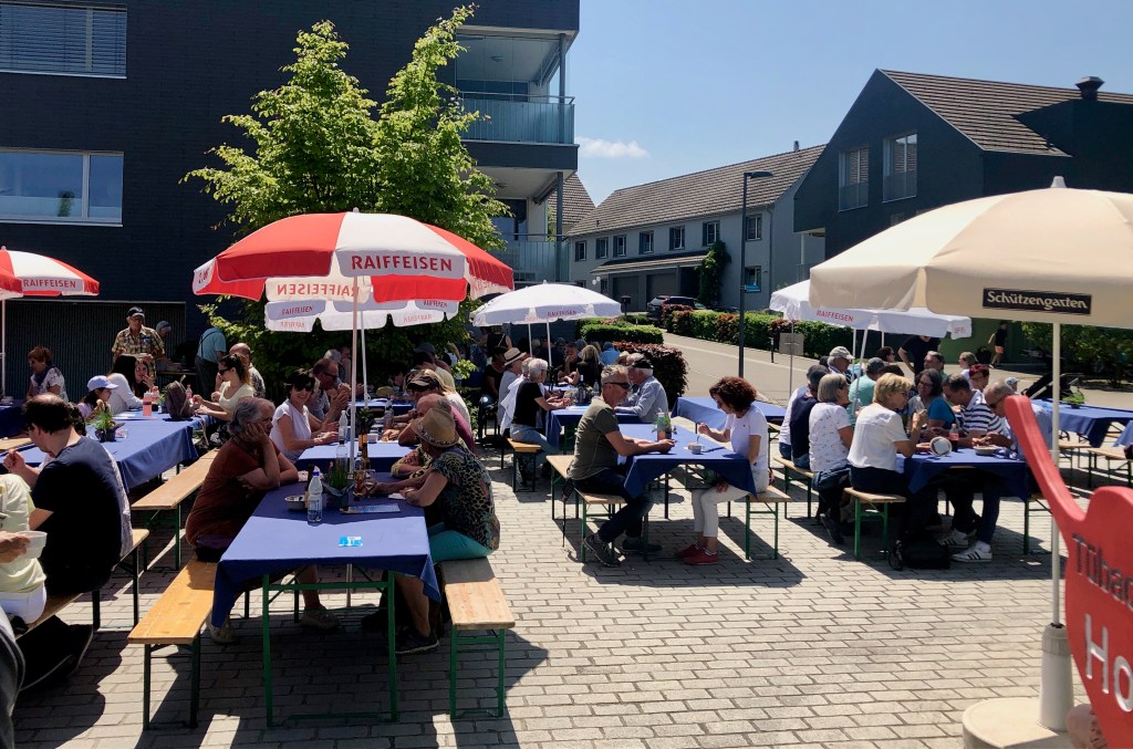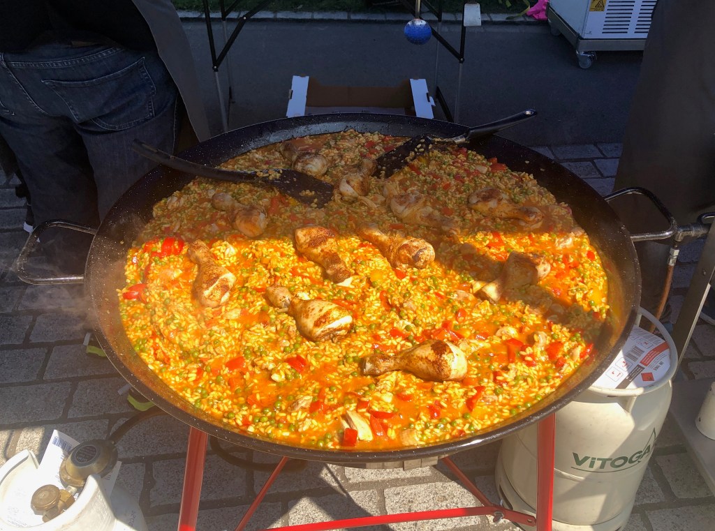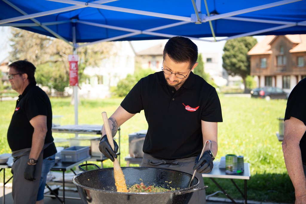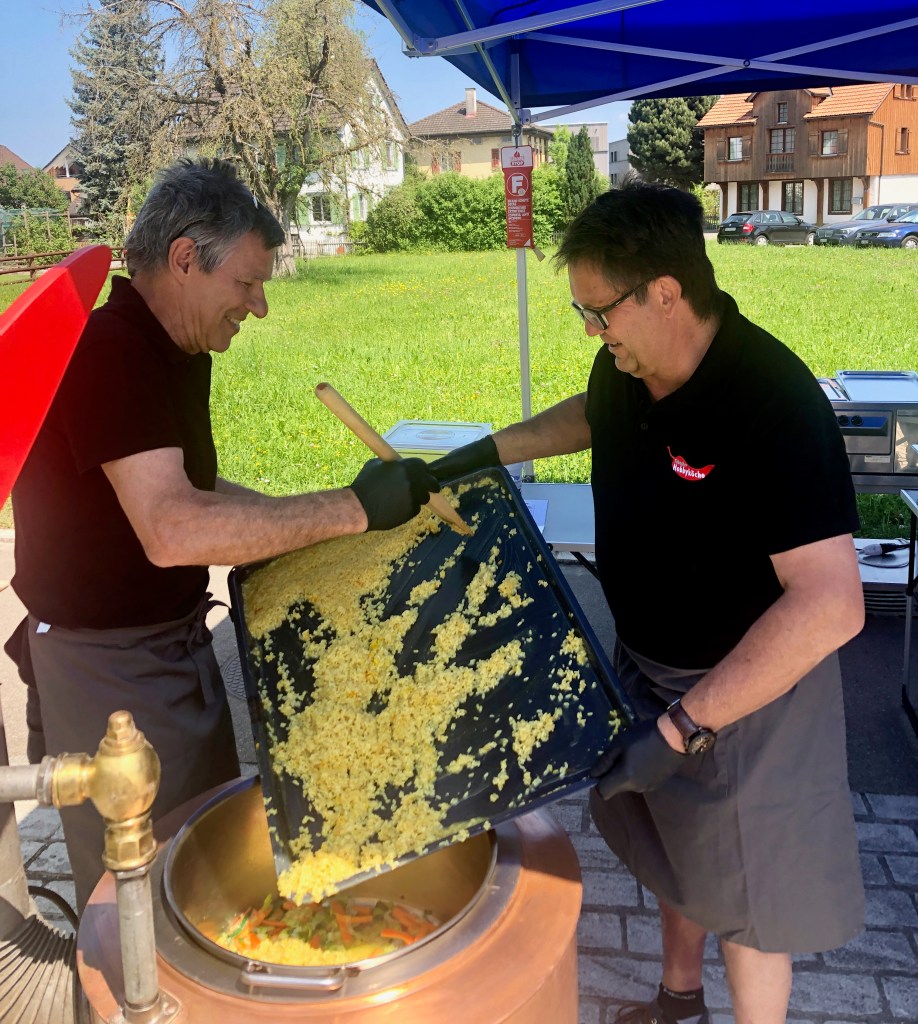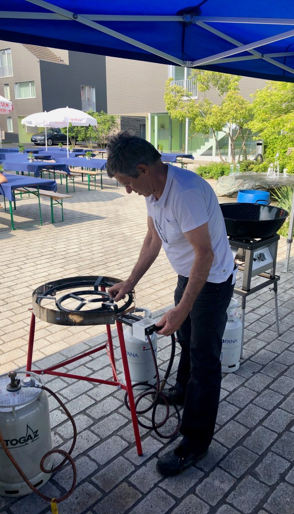 Das Mittagsangebot bestand aus dreierlei Paella-Varianten: mit Poulet, mit Fisch oder vegetarisch konnte das spanische Reisgericht genossen werden. Da das Wetter bei diesem Anlass vollumfänglich mitspielte, lud der Hermetplatz die Gäste noch zum Verweilen ein…