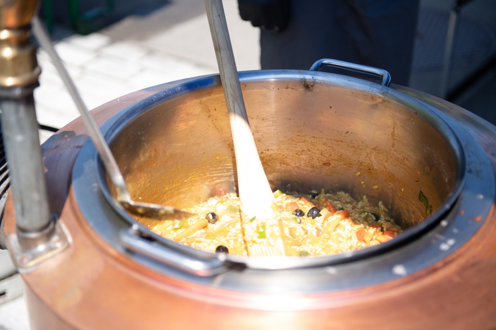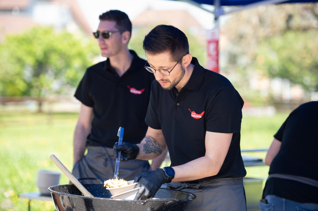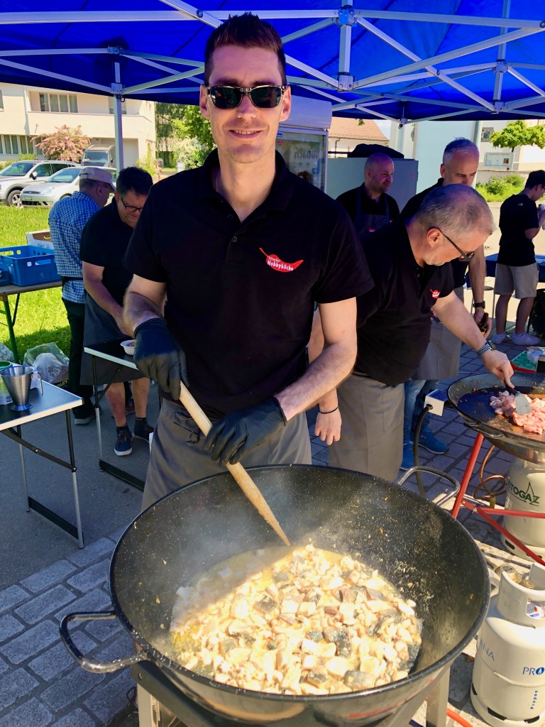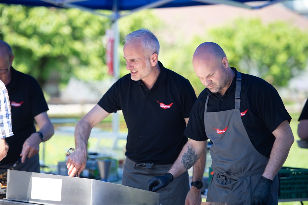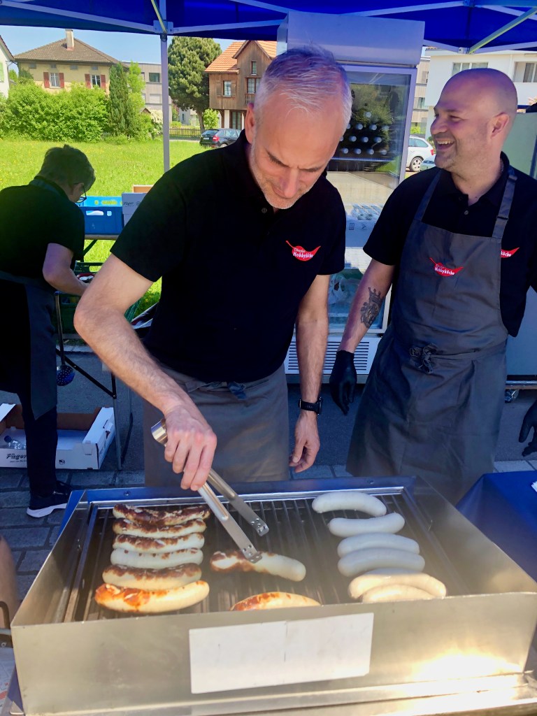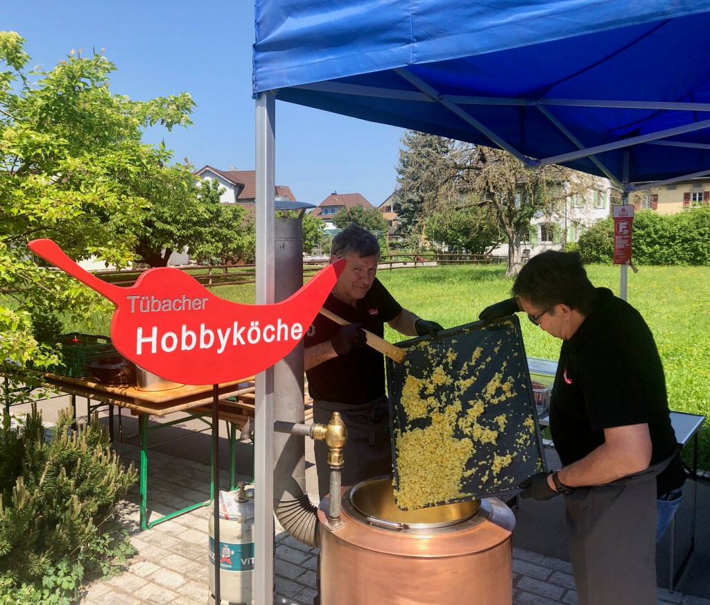 Das Mittagsangebot bestand aus dreierlei Paella-Varianten: mit Poulet, mit Fisch oder vegetarisch konnte das spanische Reisgericht genossen werden. Da das Wetter bei diesem Anlass vollumfänglich mitspielte, lud der Hermetplatz die Gäste noch zum Verweilen ein…