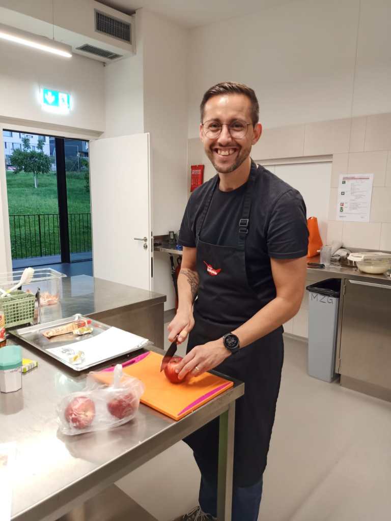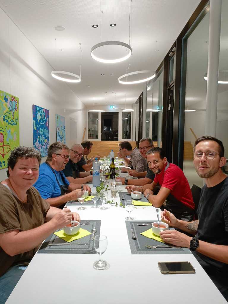 10 Mitglieder nahmen am Kochkurs teil – 1 Präsident liess sich verwöhnen. Der Abend war von Kochleiterin Caroline Koch perfekt vorbereitet. Bei der Menuplanung hatte sie eine „Carte Blanche“, da leider kein Mitglied diesen Part an sich gerissen hatte 🙂 Ein schönes 4-Gang-Menu erwartete die Teilnehmer, die sich umgehend an die Arbeit machten…